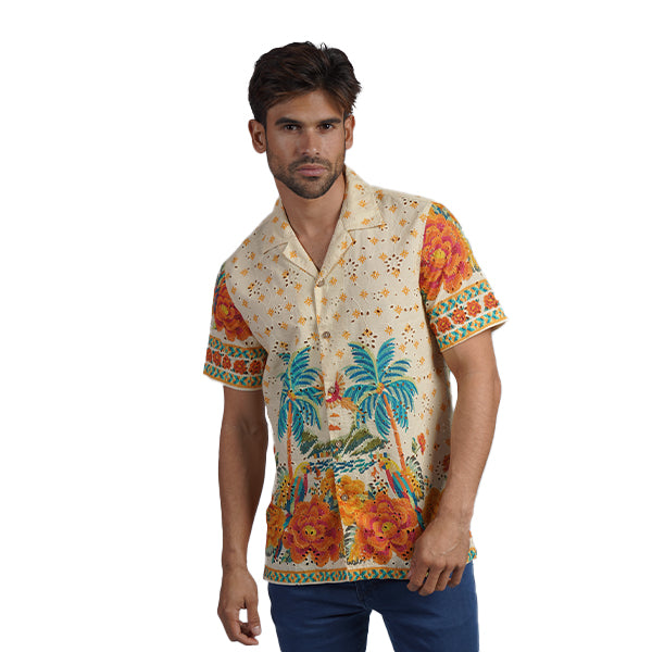 Calvaria Limited Edition Jacquard Button Down Shirt - White