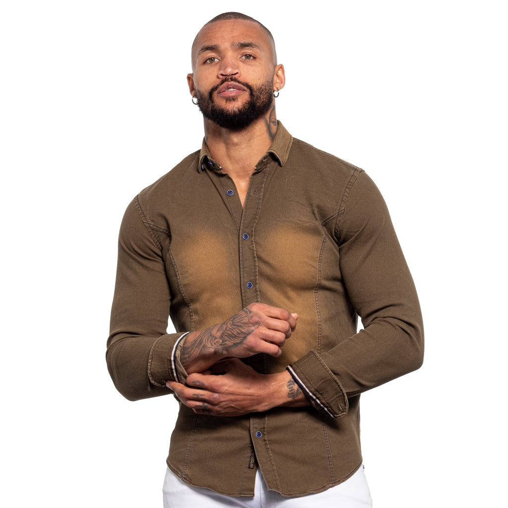 Denim Stretch Button Down Shirt - Craftsman Brown