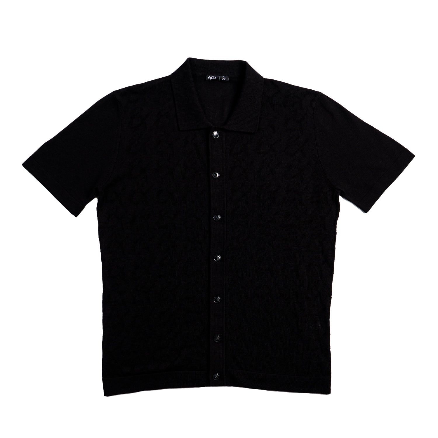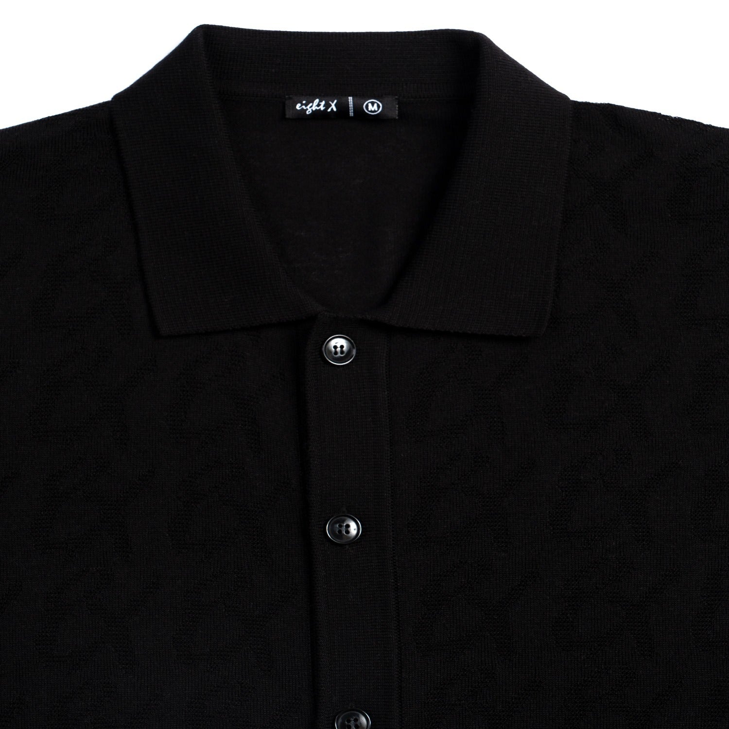 8X Monogram Short Sleeve Button Up Knit Polo Shirt - Black