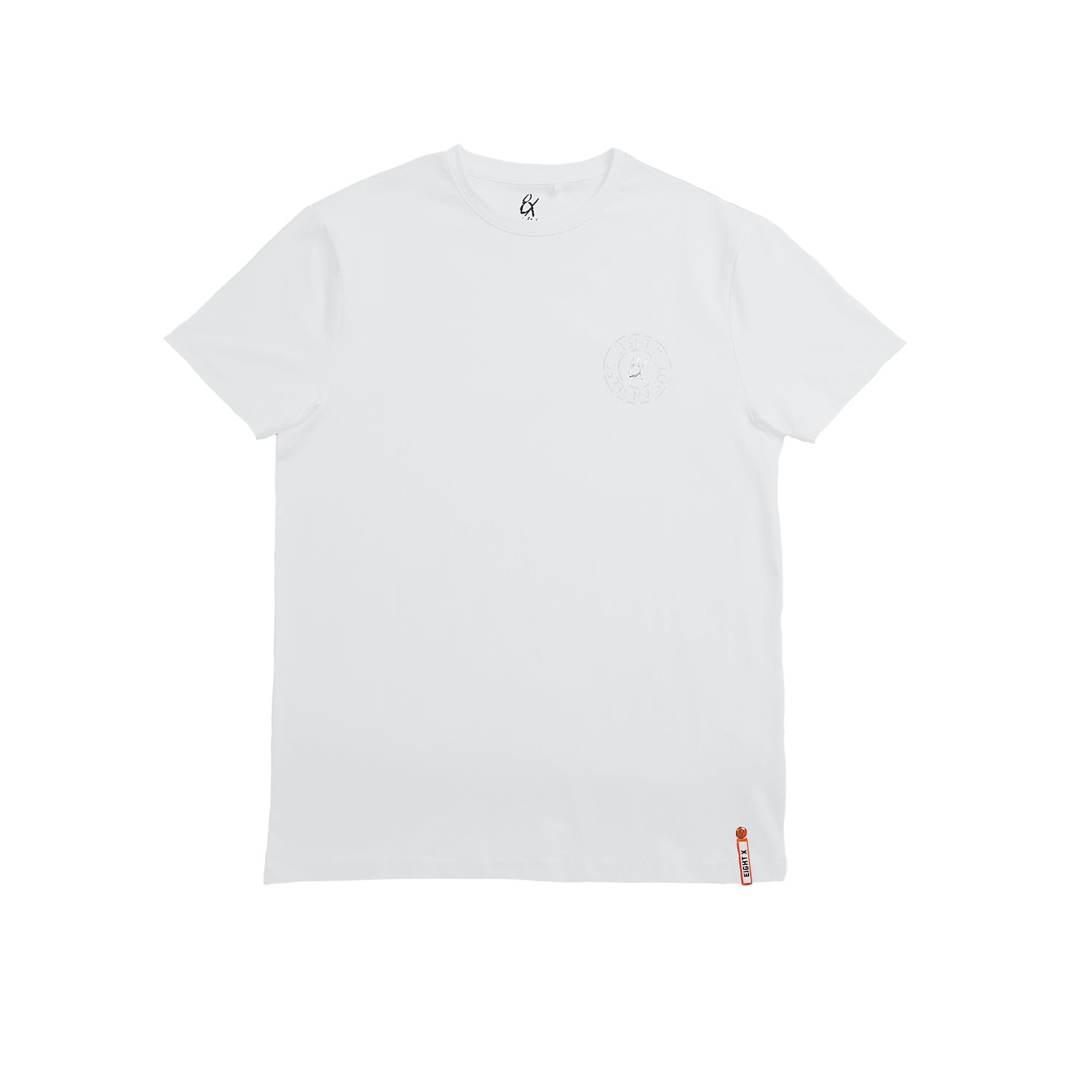 A modern classic with a subtle raised chest detail featuring the 8X logo. Crafted in our signature slim fit from a soft cotton blend, this tee offers effortless comfort and refined style. Available in two versatile colorways.