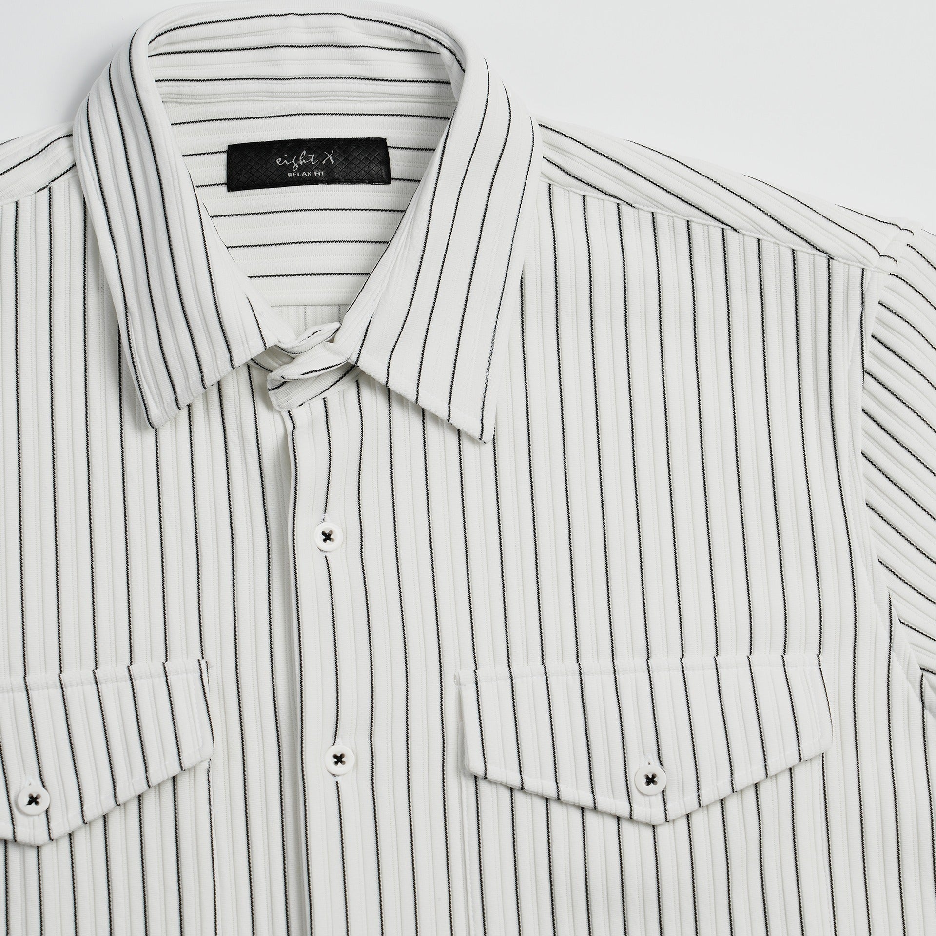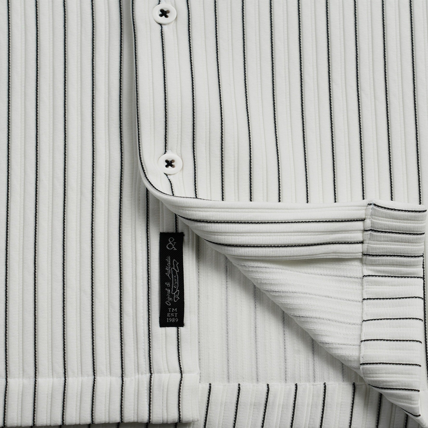 The Slate Short Sleeve + Matching Pant Set features a relaxed fit with thin, evenly spaced vertical black stripes for a clean and minimalist look. This coordinated set offers effortless style and comfort in one simple package.