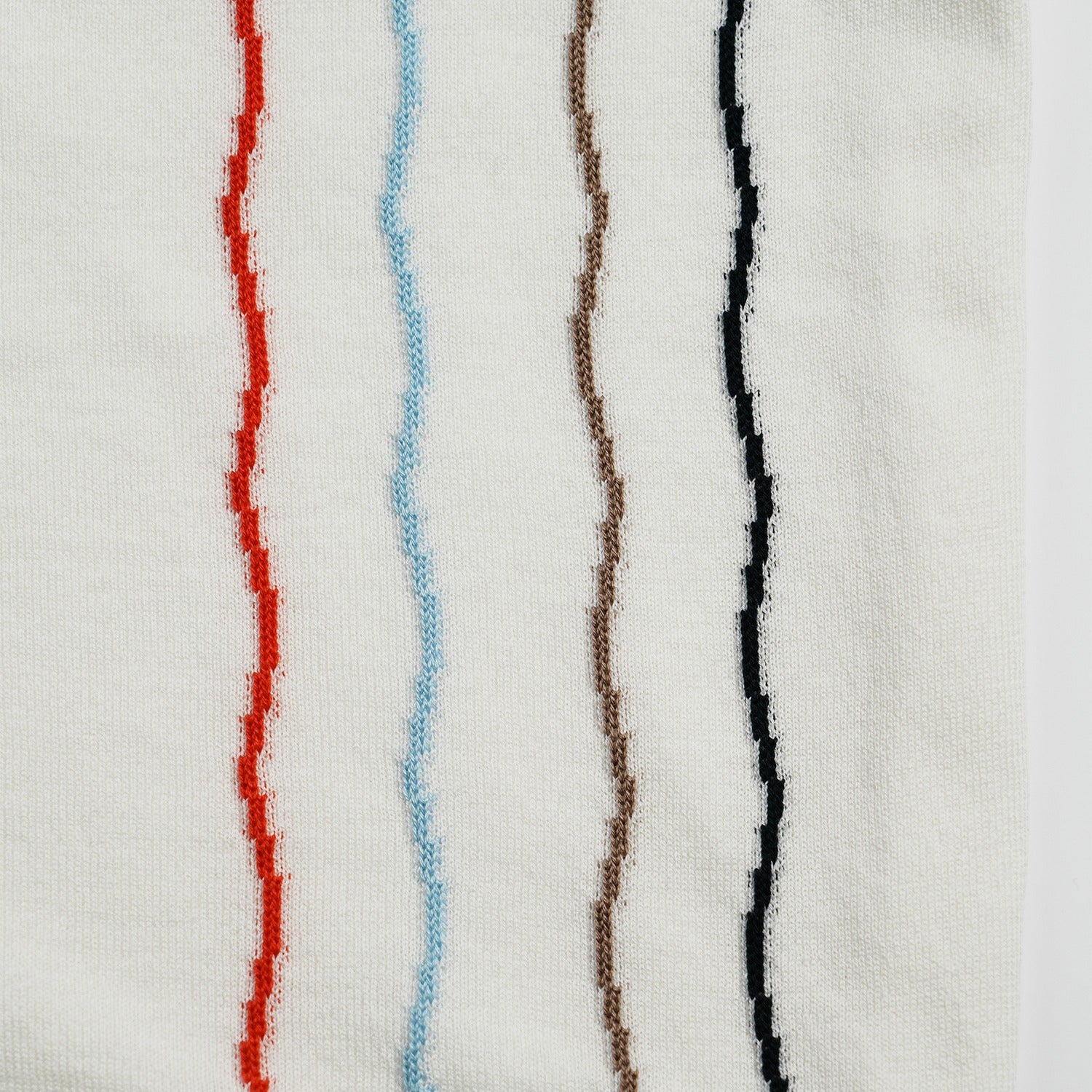 Minimal but distinct, the Oro showcases vertical stripes in navy, beige, baby blue, and red. Crafted from a lightweight knit that's soft to the touch, it's a standout piece that pairs effortlessly with neutrals.