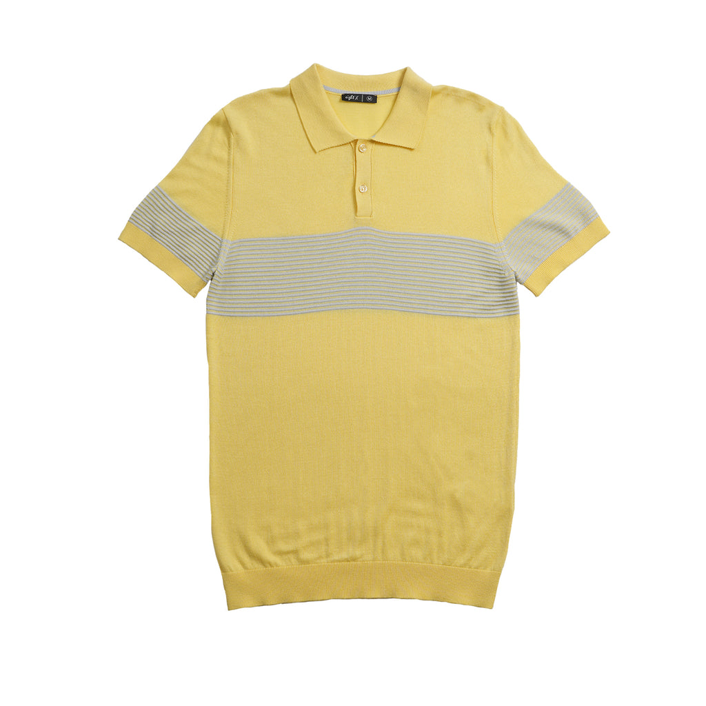 Striped Chest Knit Polo - Yellow