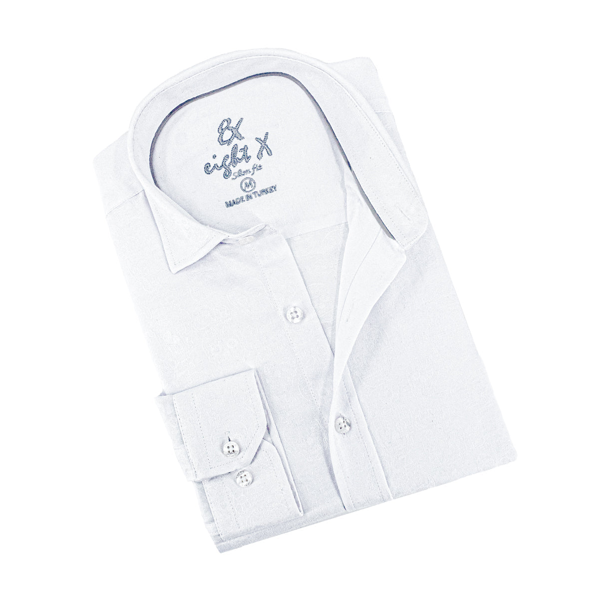 This white jacquard shirt pairs with virtually any color chino pants or jeans!