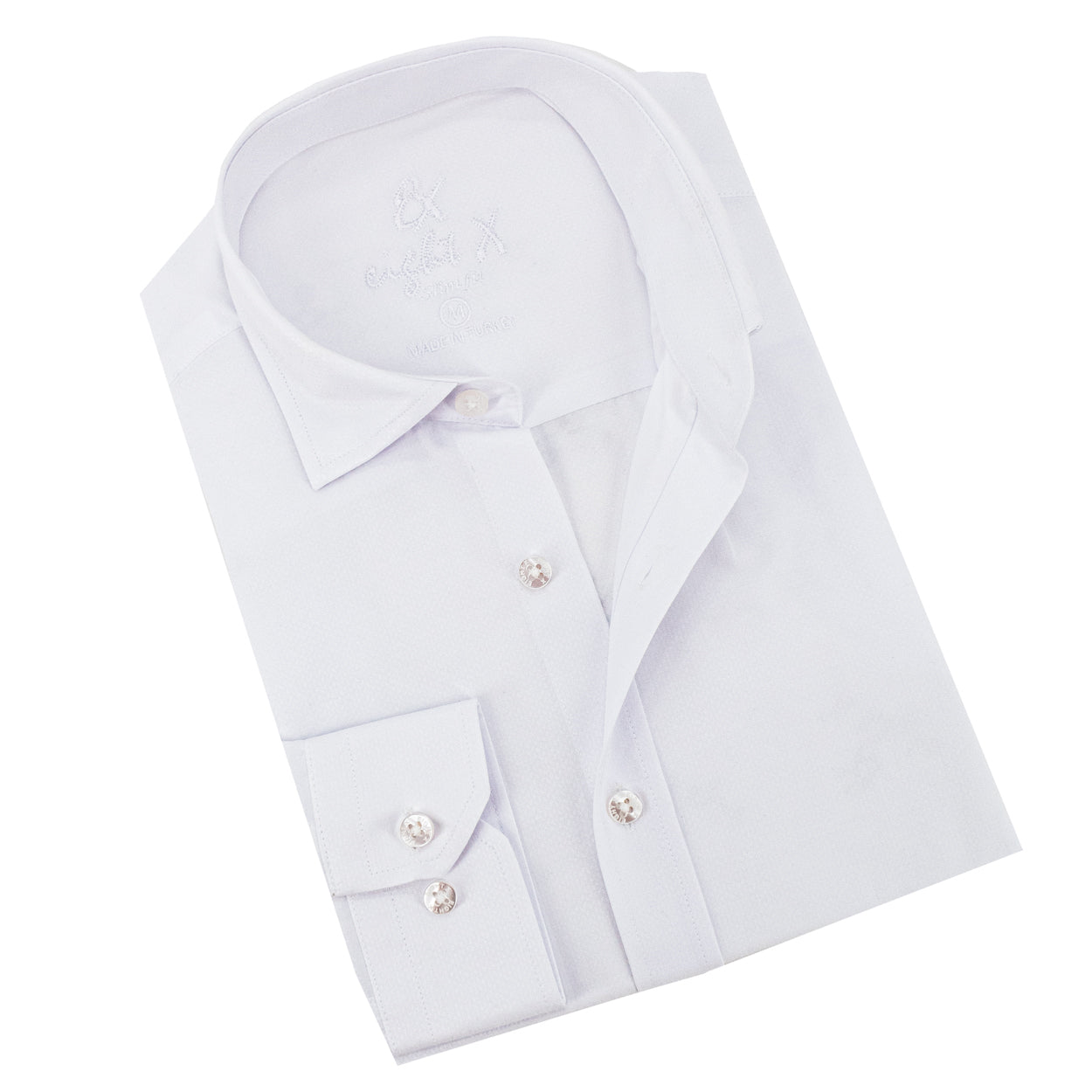This white jacquard shirt pairs with virtually any color chino pants or jeans!