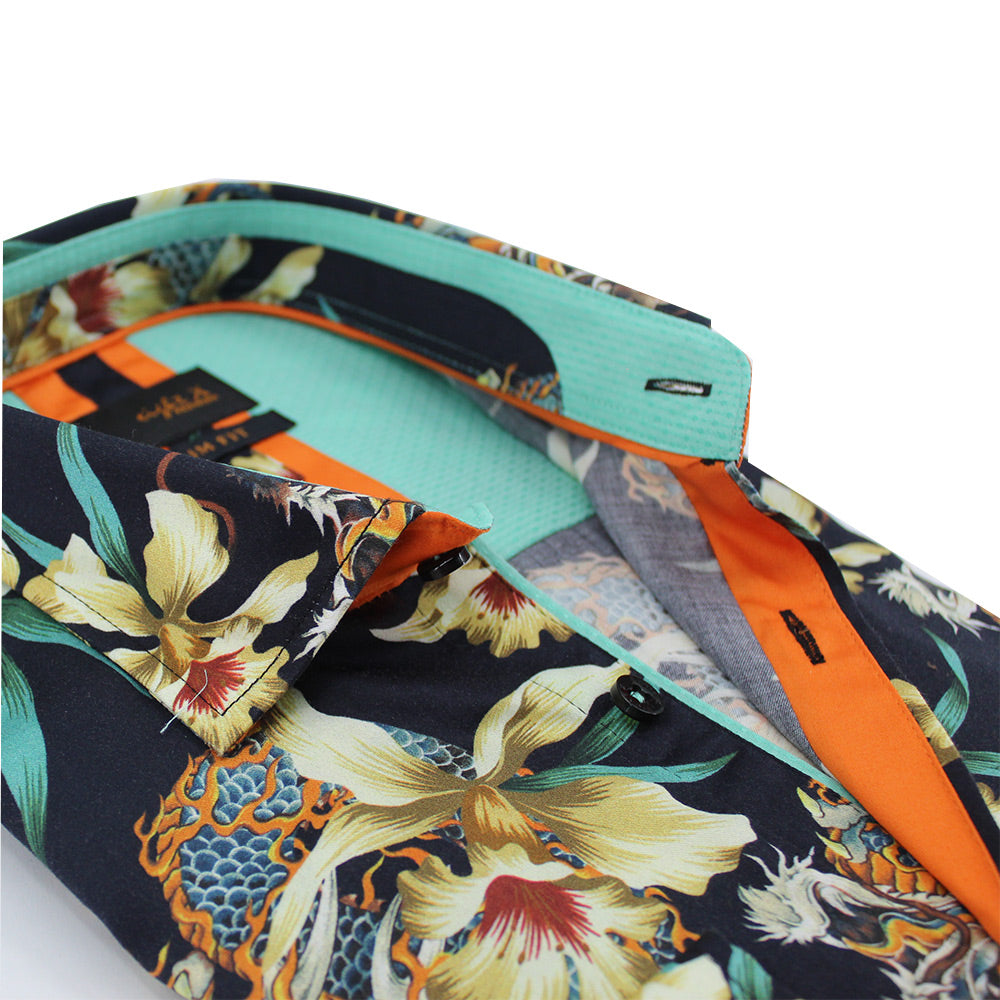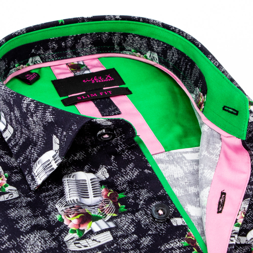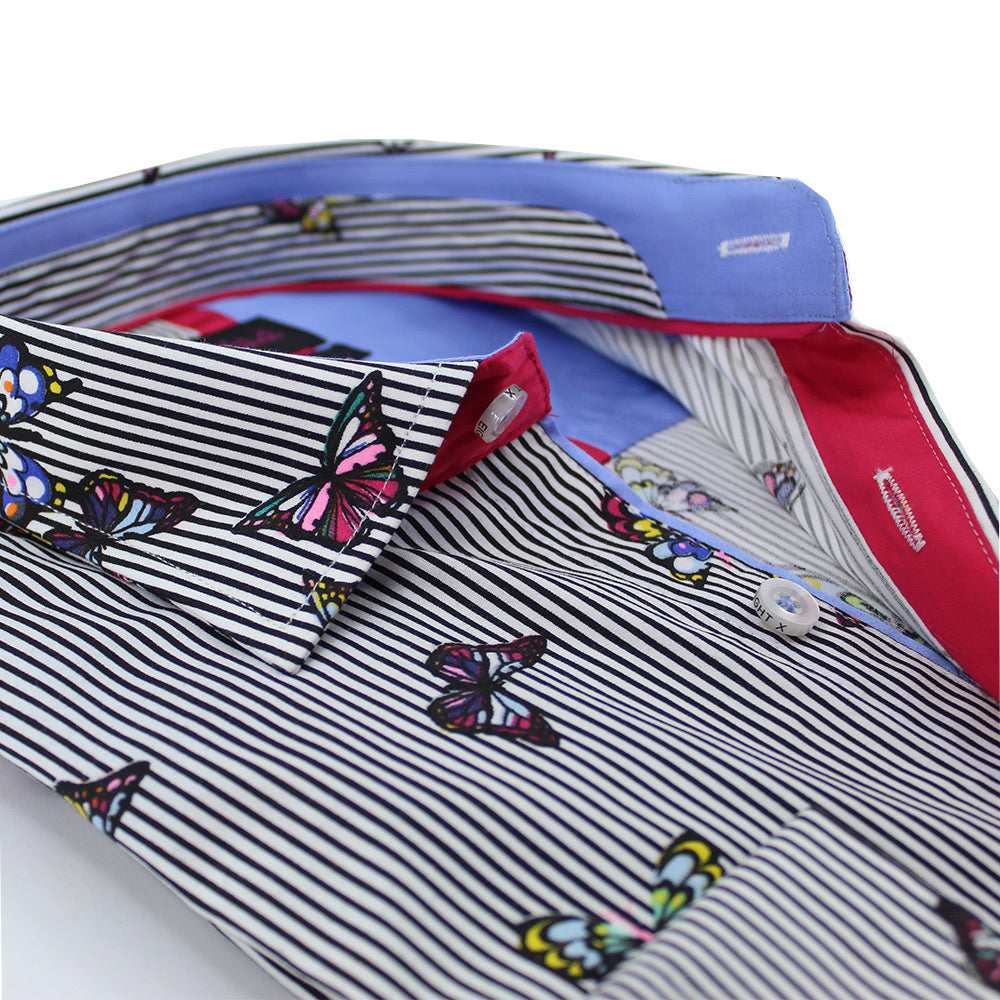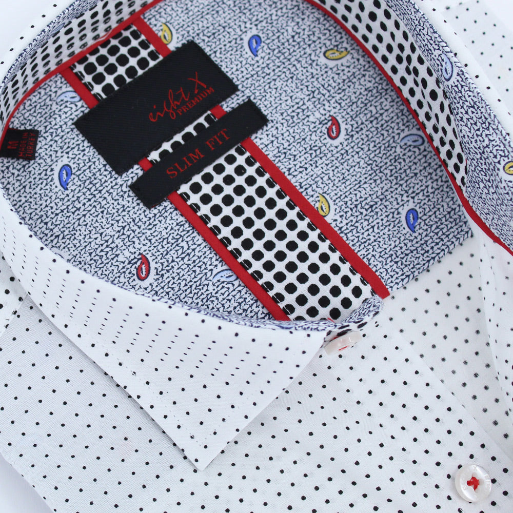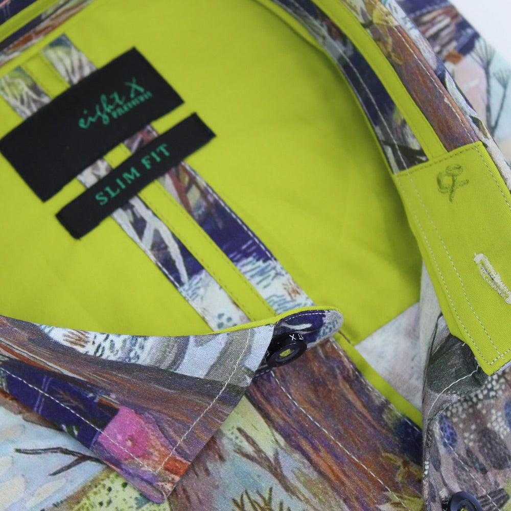 Grid and Vine Print Foil Jacquard Shirt With Burgundy Trim