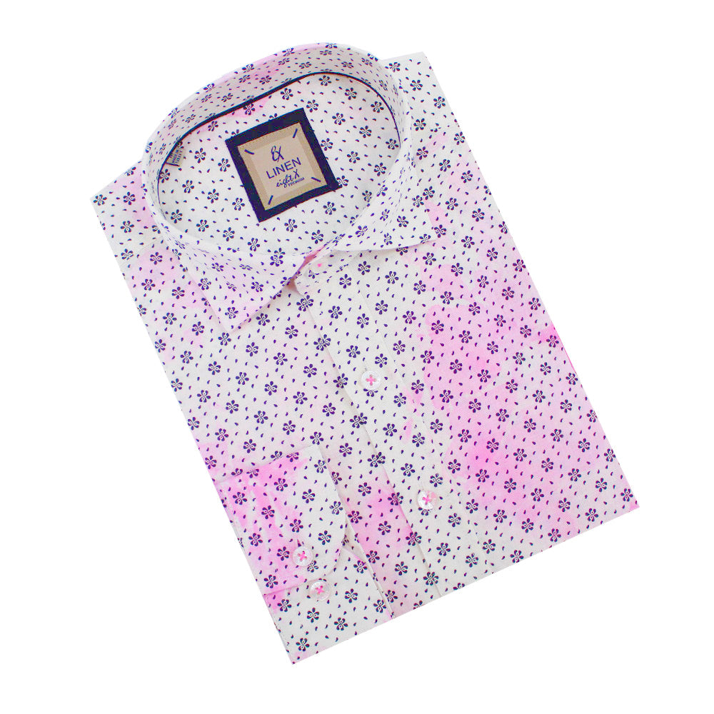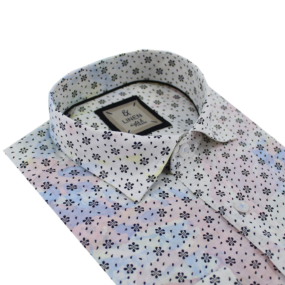 Floral Print Linen Shirt - Multicolor Tie Dye