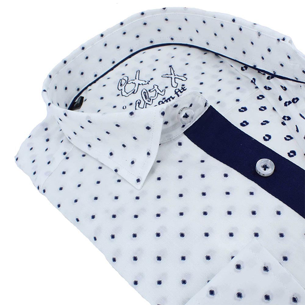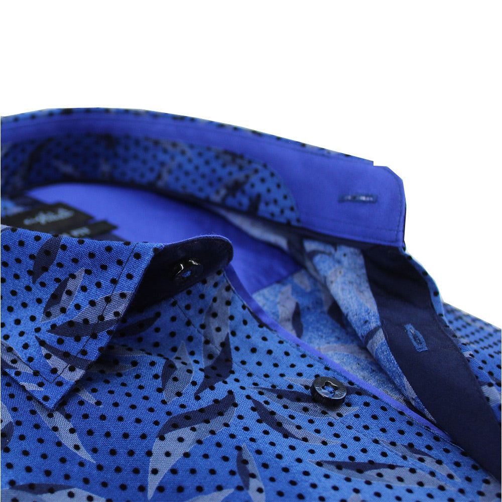 Navy Blue Polka Dot Print Fil Coupé Button Down Shirt