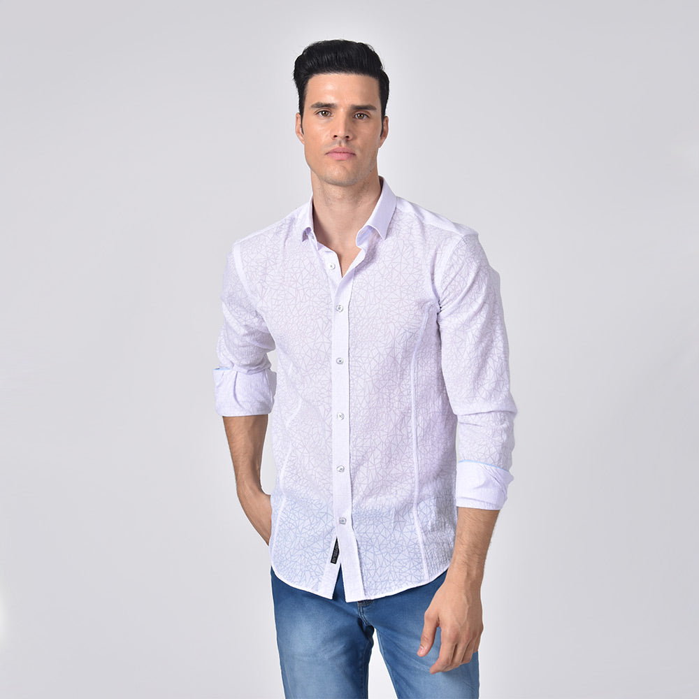 Soft Blue Geo-Shapes Button Down Jacquard Shirt