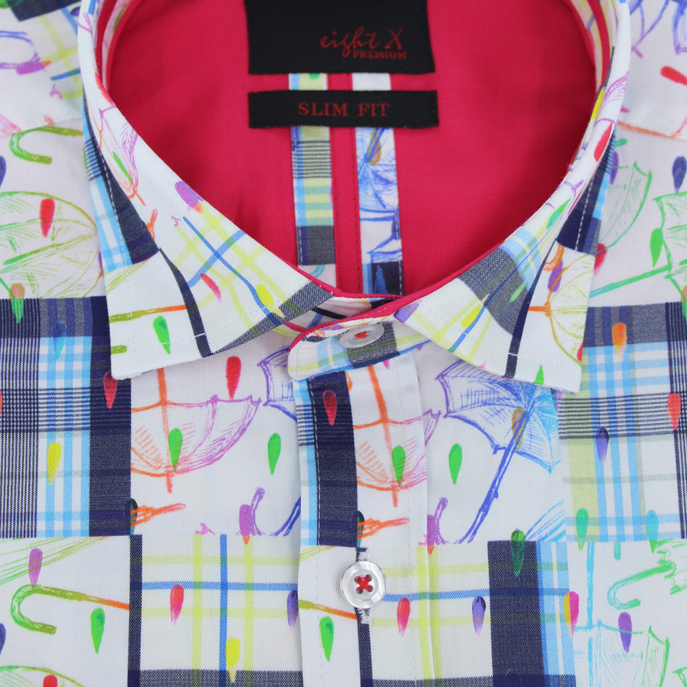 Umbrellas and Plaid In Colorful Rain Drops Button Down Shirt