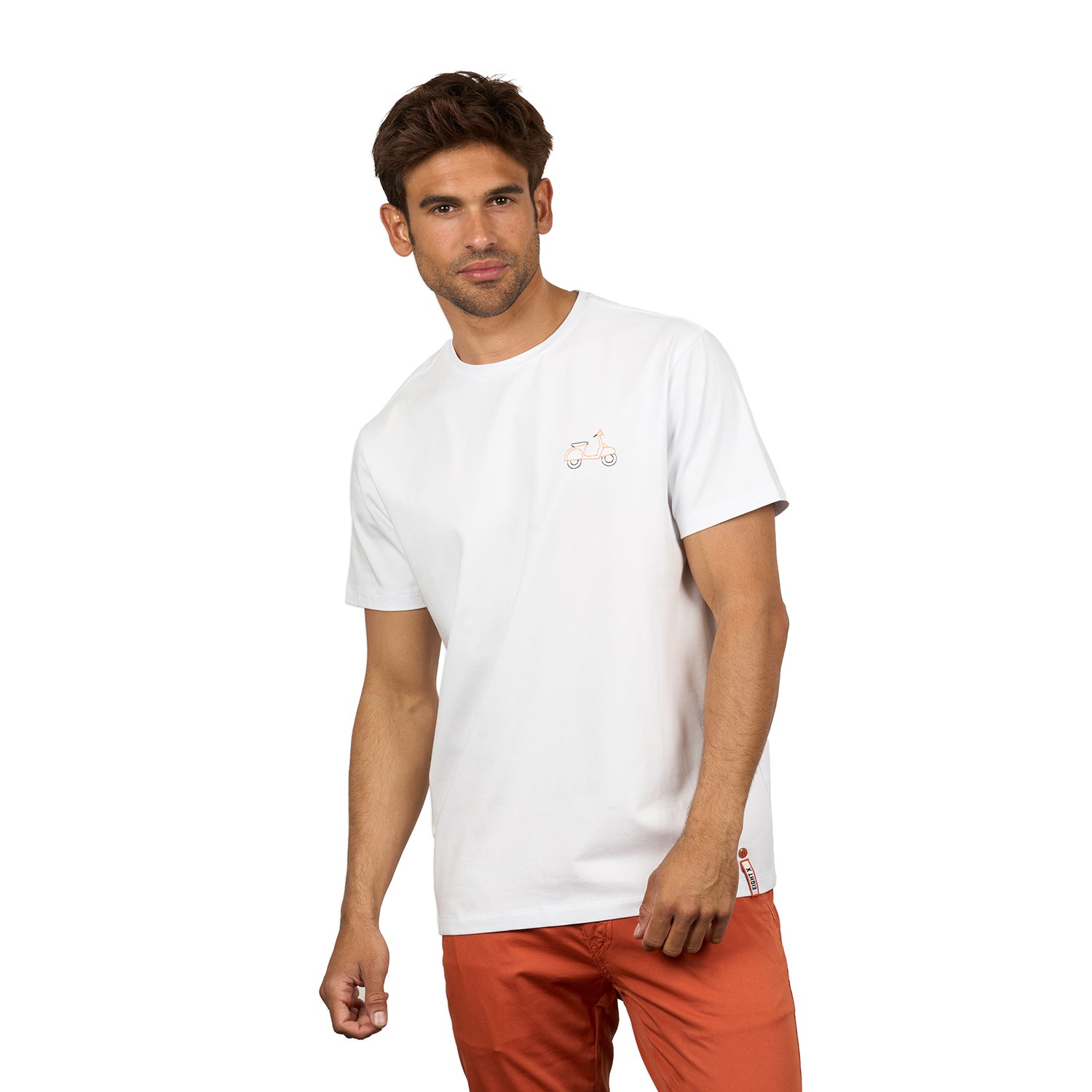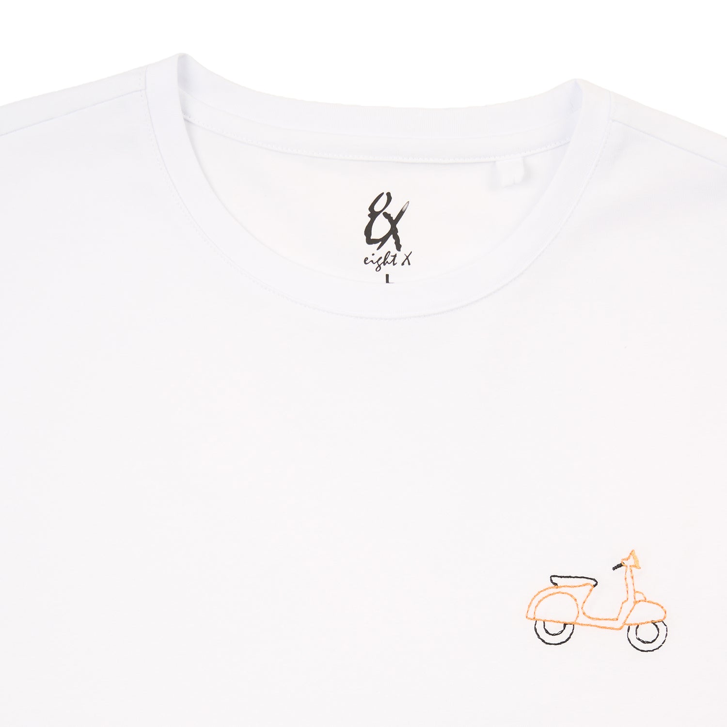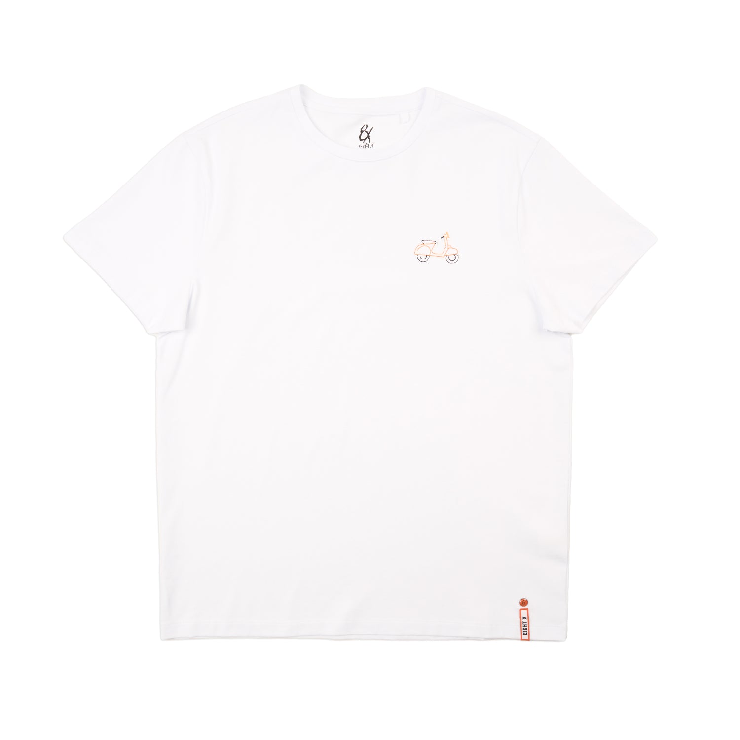 A men's graphic t-shirt featuring a subtle embroidered scooter detail. Designed in Los Angeles, this Eight X tee blends minimal design with everyday wearability for an elevated, effortless look.