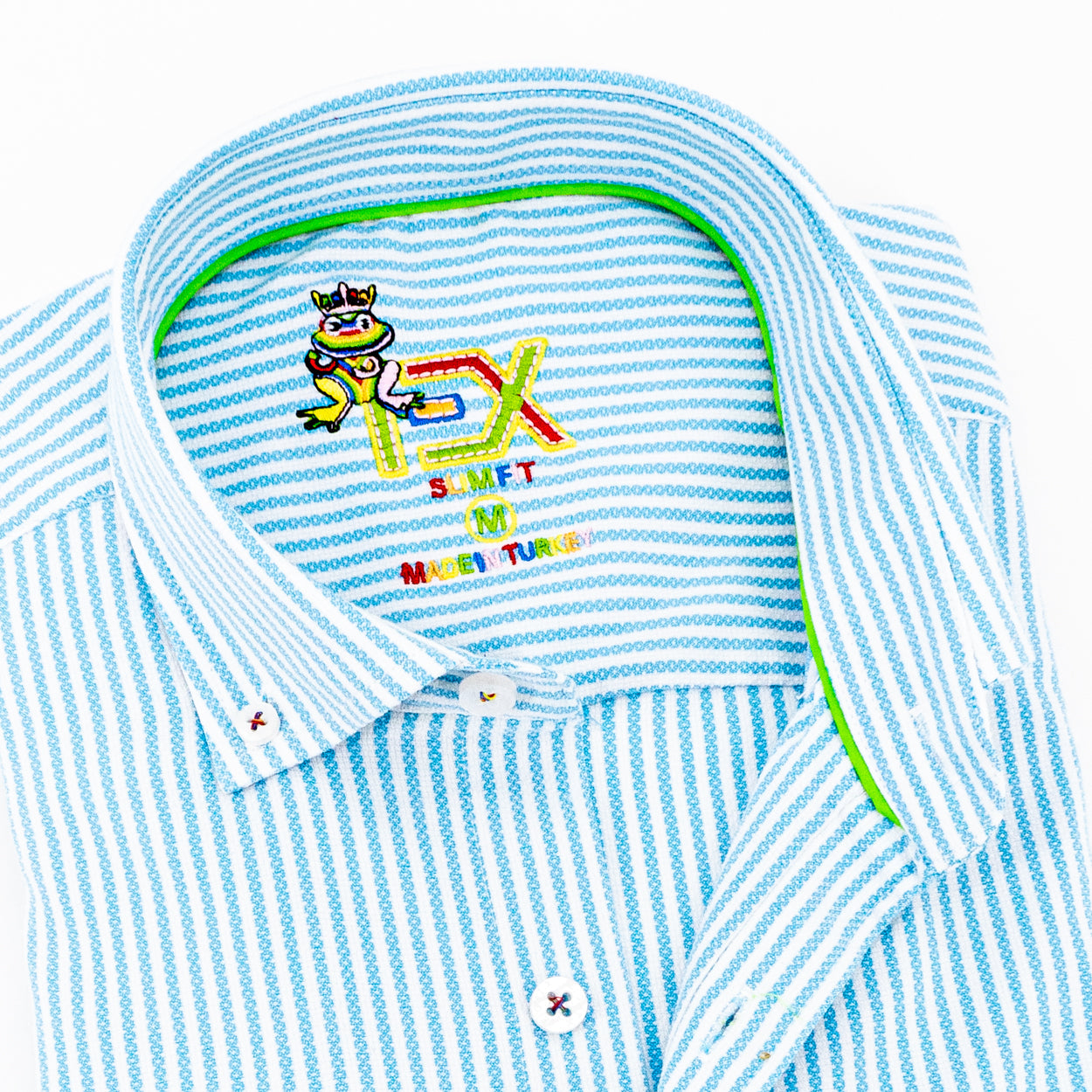 There's soft, and then there's Eight X soft.  The Softest Stripe FROG shirt stays true to it's name with a dream-like soft stretch cotton fabric, specially sourced from Italy. These handmade shirts breathe well and flatter all body types, thanks to our Signature Slim Fit cut. With sunny orange stripes and rainbow embroidery, The Softest Stripe shirt guarantees a bright day!