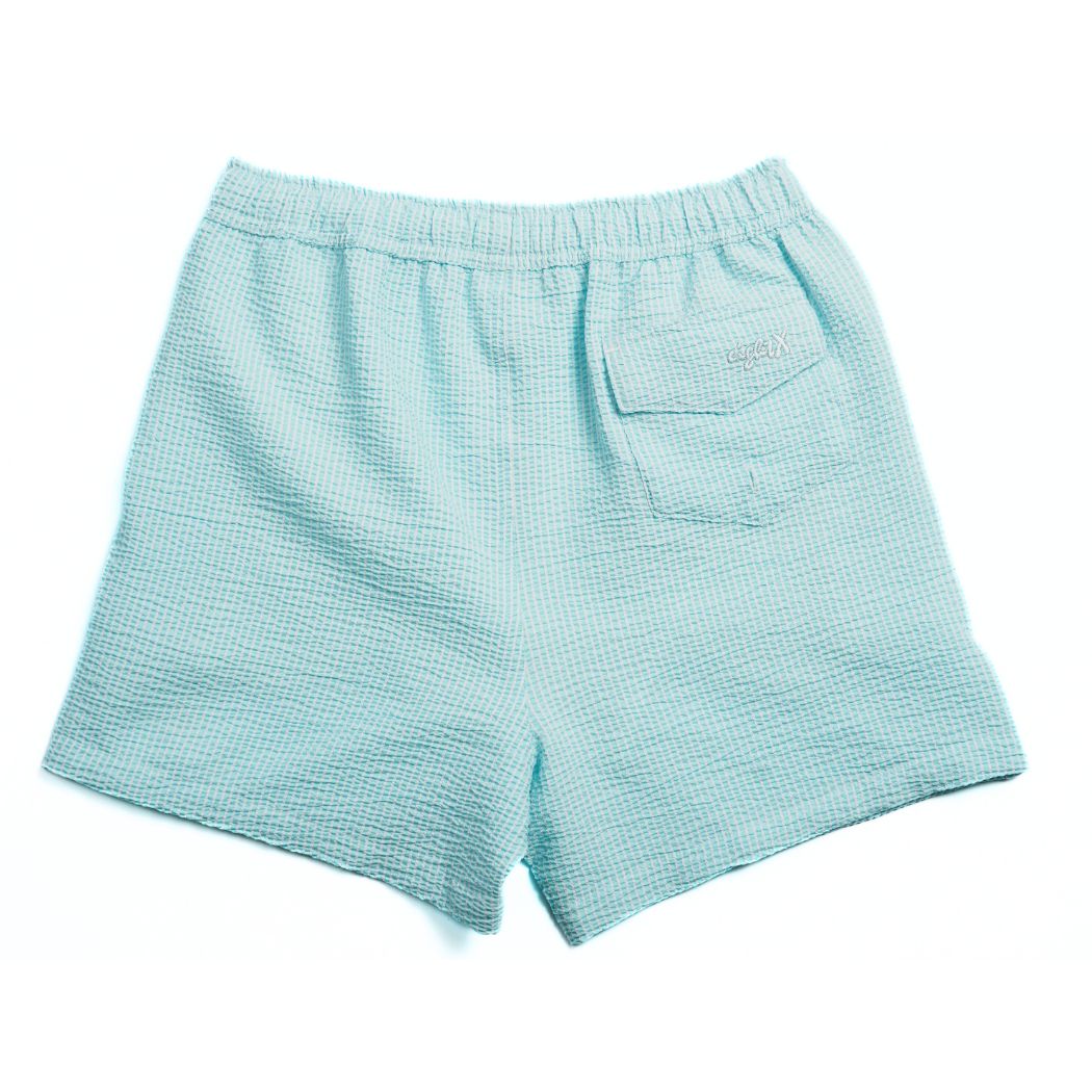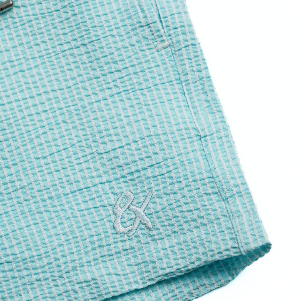 These swim trunks sit just above the knee and are made from breathable, comfortable fabric. They feature a water-repellent coating that allows water to slide off. Available in several light, fresh shades perfect for the beach or pool.