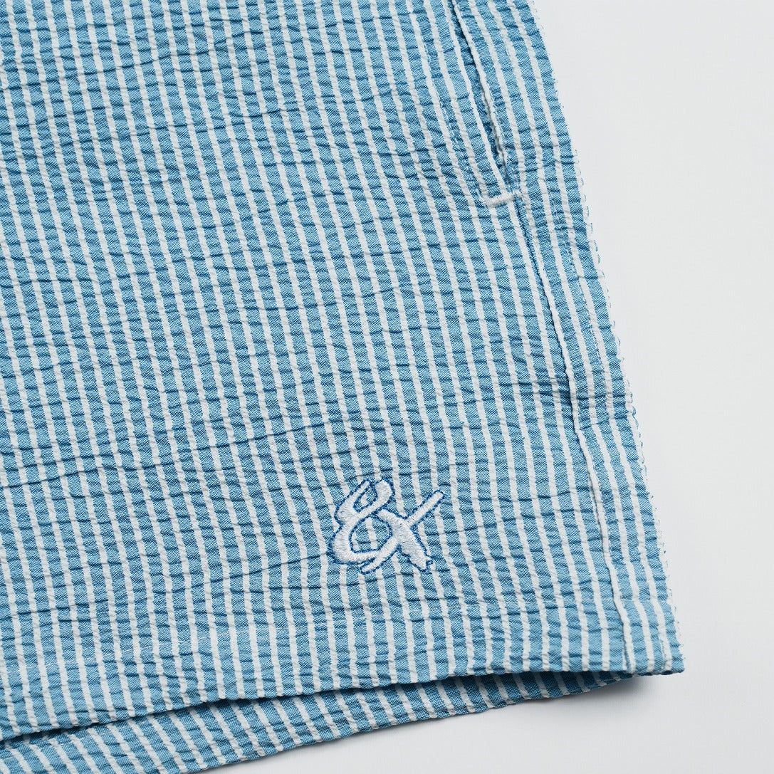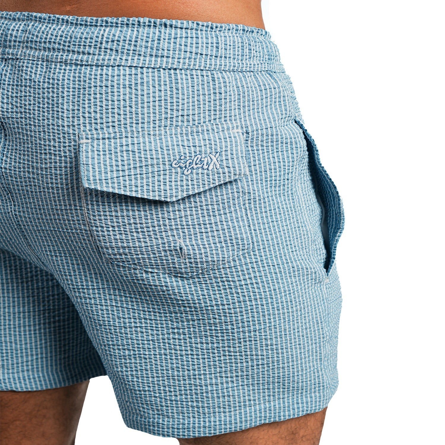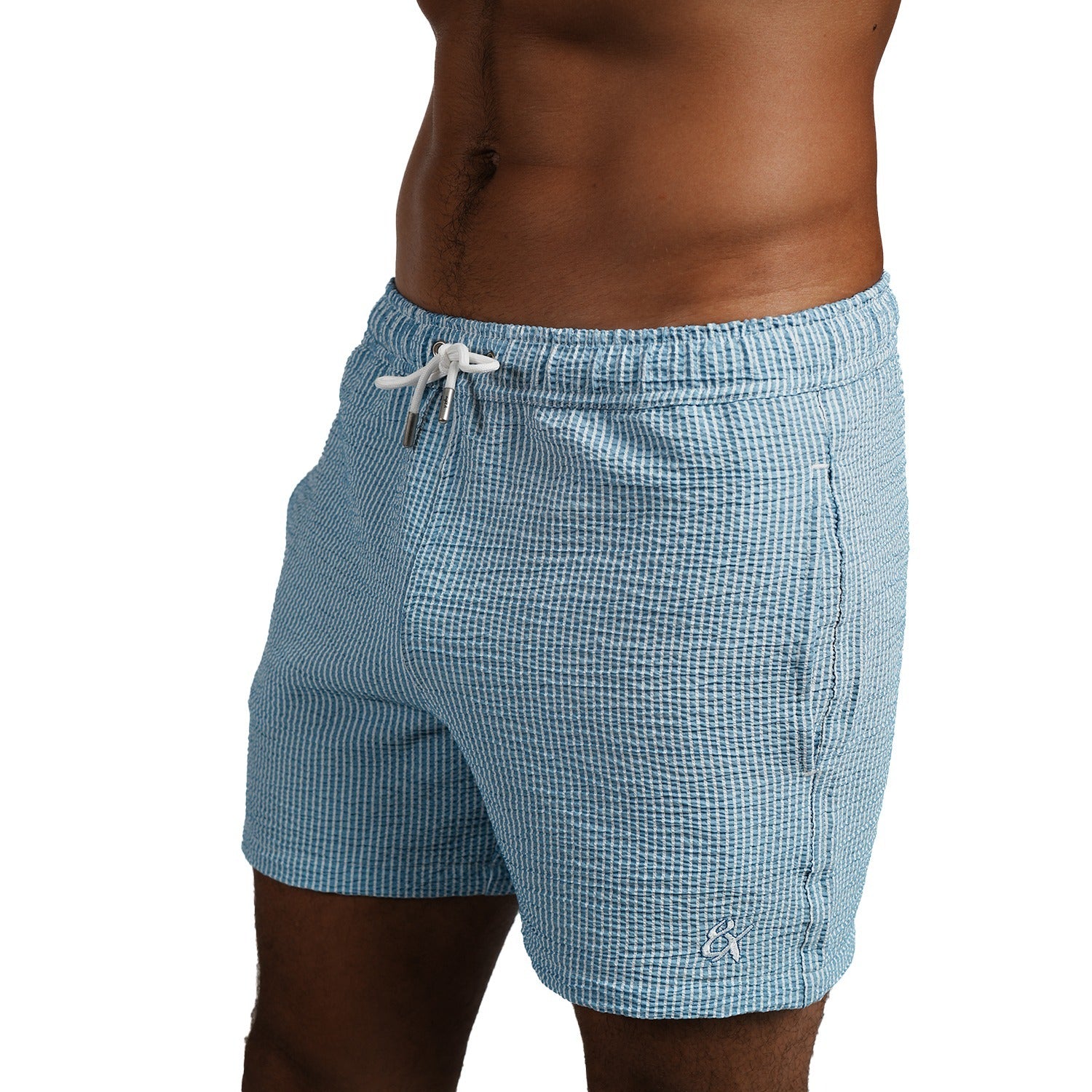 These swim trunks sit just above the knee and are made from breathable, comfortable fabric. They feature a water-repellent coating that allows water to slide off. Available in several light, fresh shades perfect for the beach or pool.