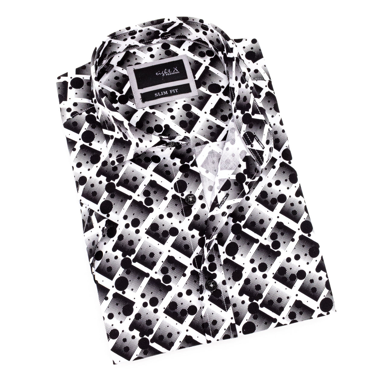 Acelera a través del tiempo con esta atrevida camiseta de manga corta en blanco y negro. Confeccionada a mano con algodón italiano selecto y cortada en nuestro Universalmente favorecedor Signature Slim Fit, esta camisa exige ser vista una y otra vez.