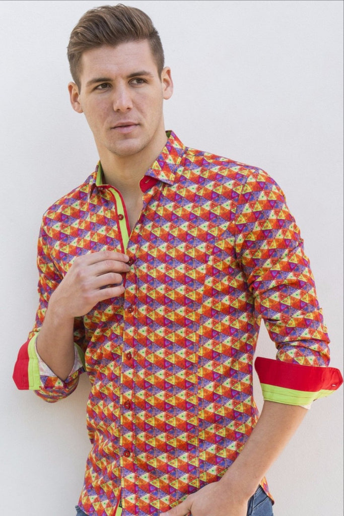 El estilo está en constante evolución, asegúrese de estar al día con este botón de tres formas de impresión digital con ribete rojo. El tejido de algodón puro de alta calidad la convierte en la camiseta perfecta para cualquier clima. El moderno corte slim fit brinda un estilo complementario y seguro.