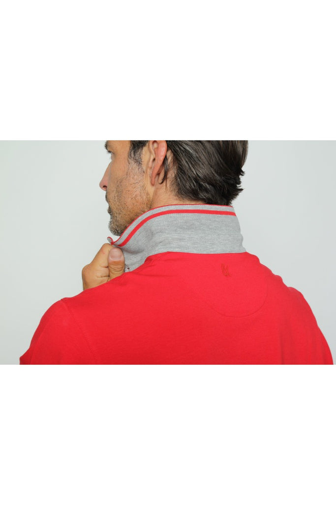 • Disfruta de un estilo casual con un poco de clase cuando vistes este polo rojo con detalles en blanco y gris.