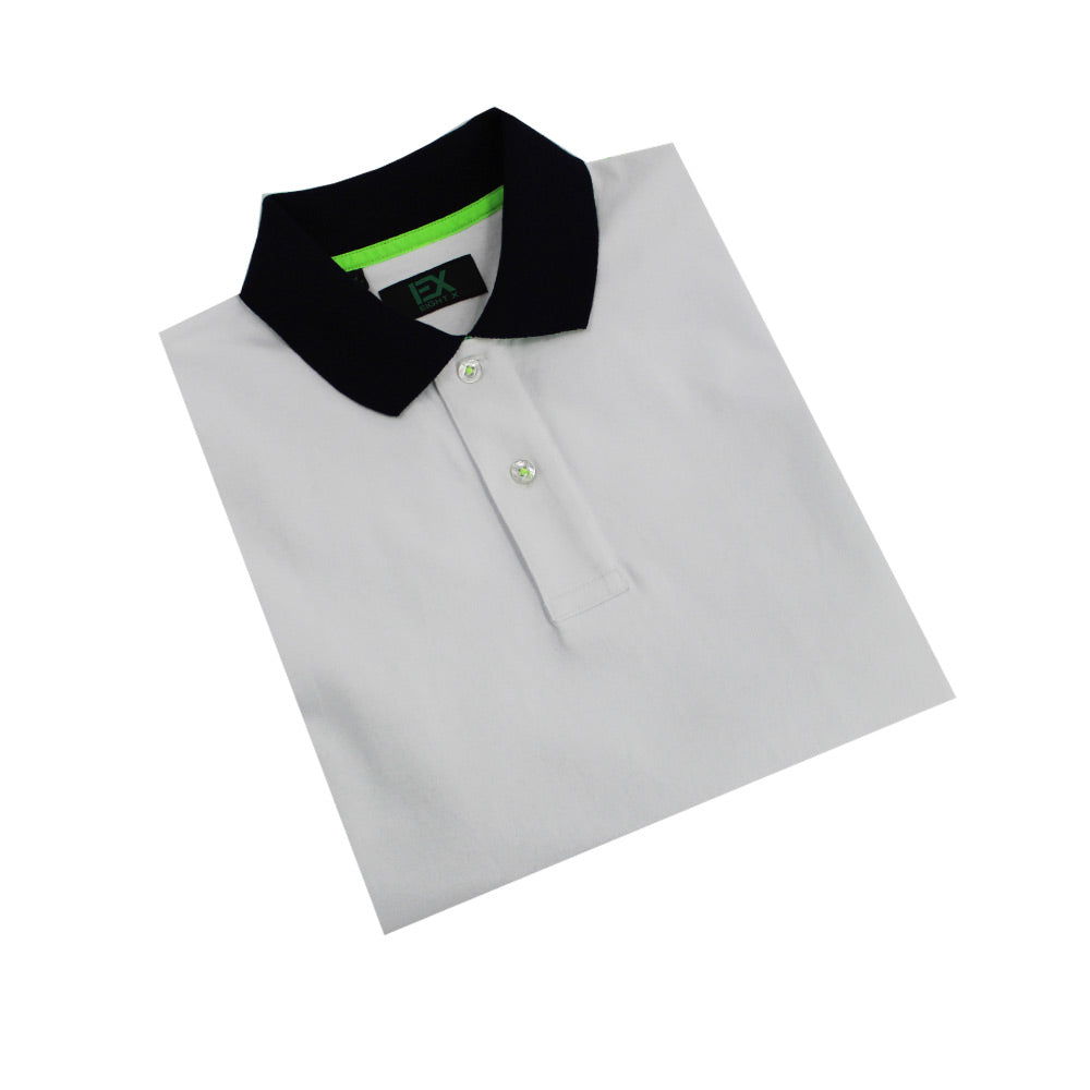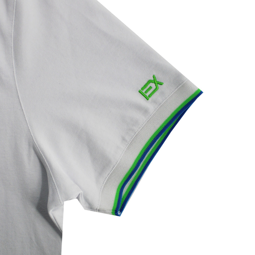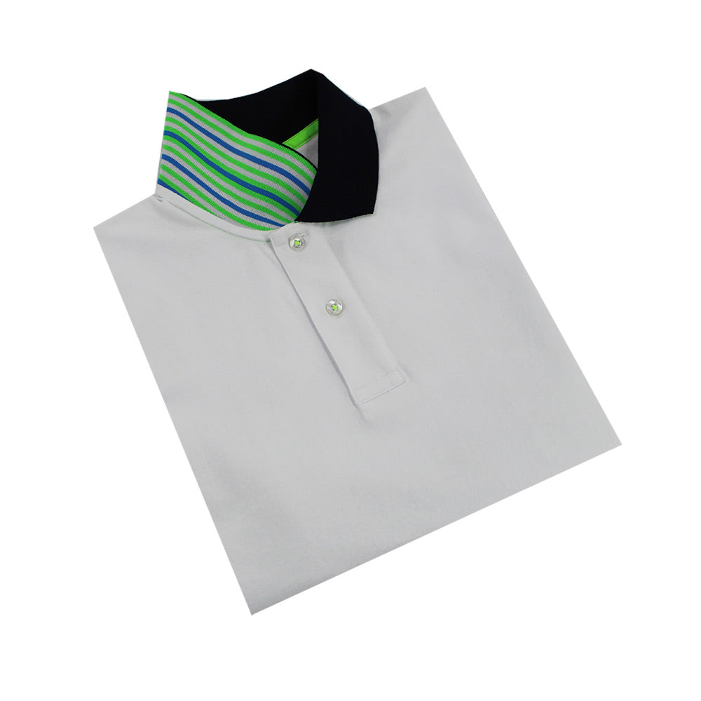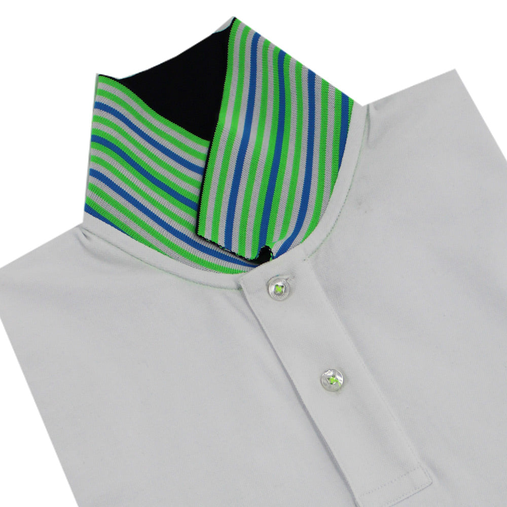 Polo Blanco con Cuello Azul Marino de Doble Faz con Rayas Multicolores