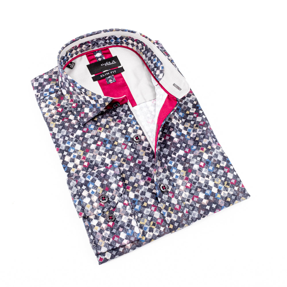 Perfect for the office or a night out with friends, this slim-fit shirt was crafted using our high-quality Turkish cotton weave that feels like a smooth, silky hug that you won't want to let go of! At Eight-X, you can rest assured that you are only getting the highest quality men's apparel that will last in integrity, color retention, and comfort. See (and feel) the difference for yourself and get your Abstract in Charcoal shirt and other men's apparel from Eight-X today!