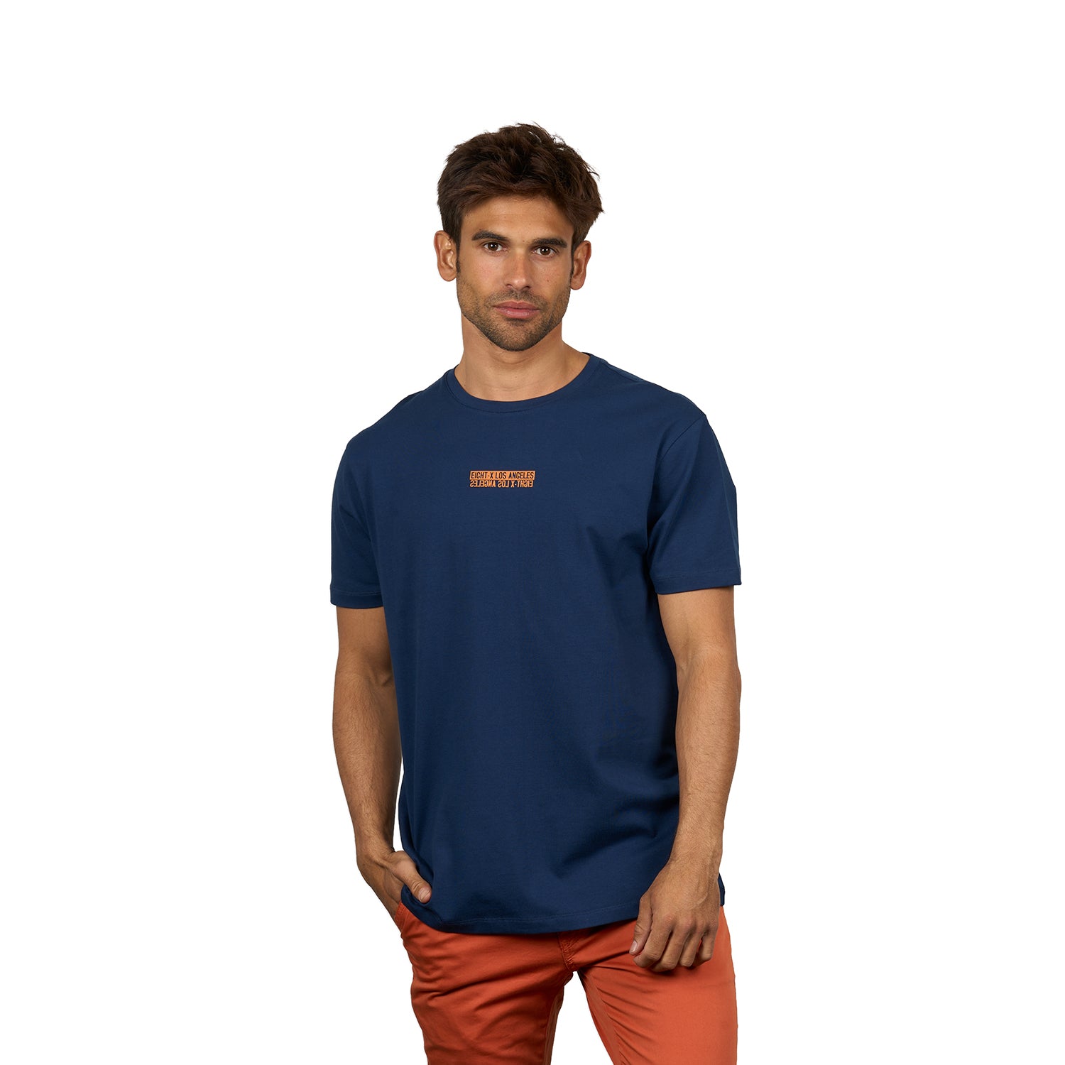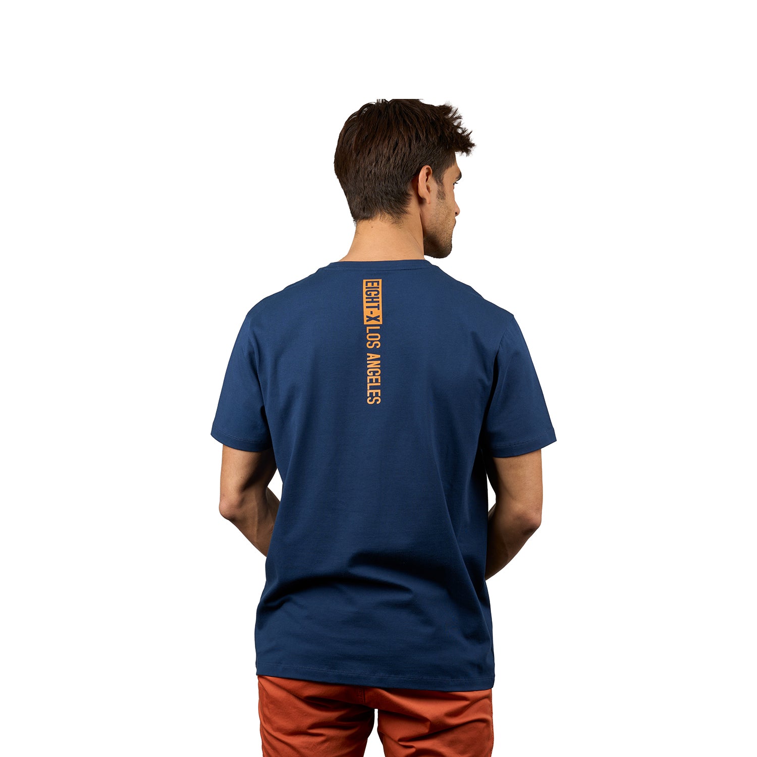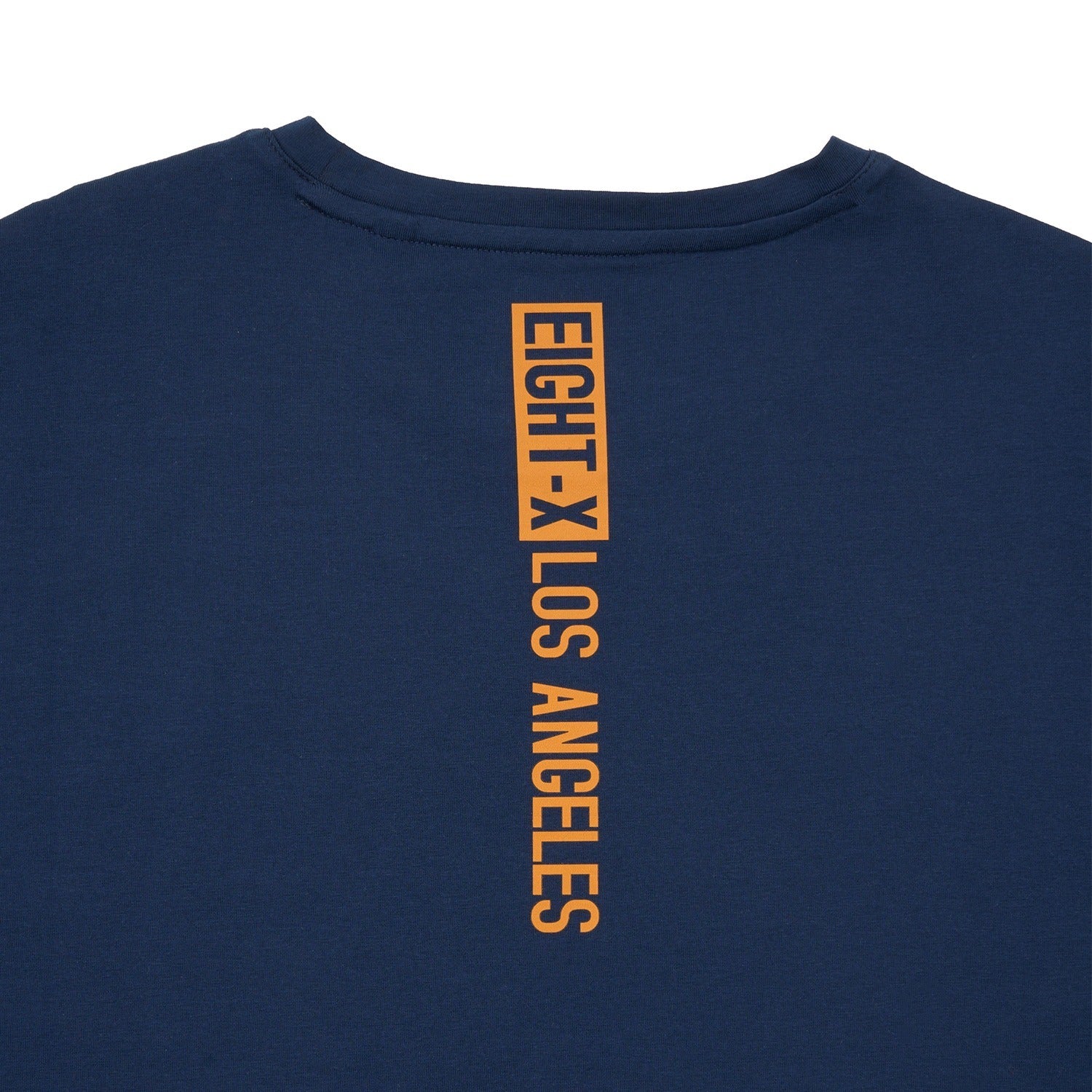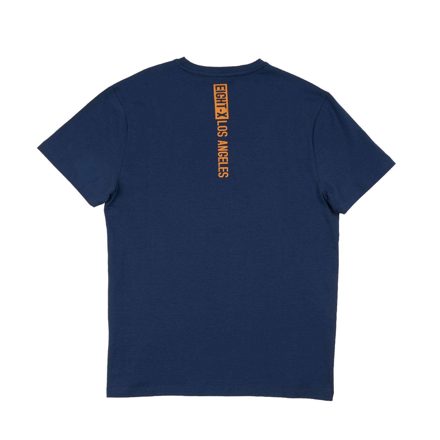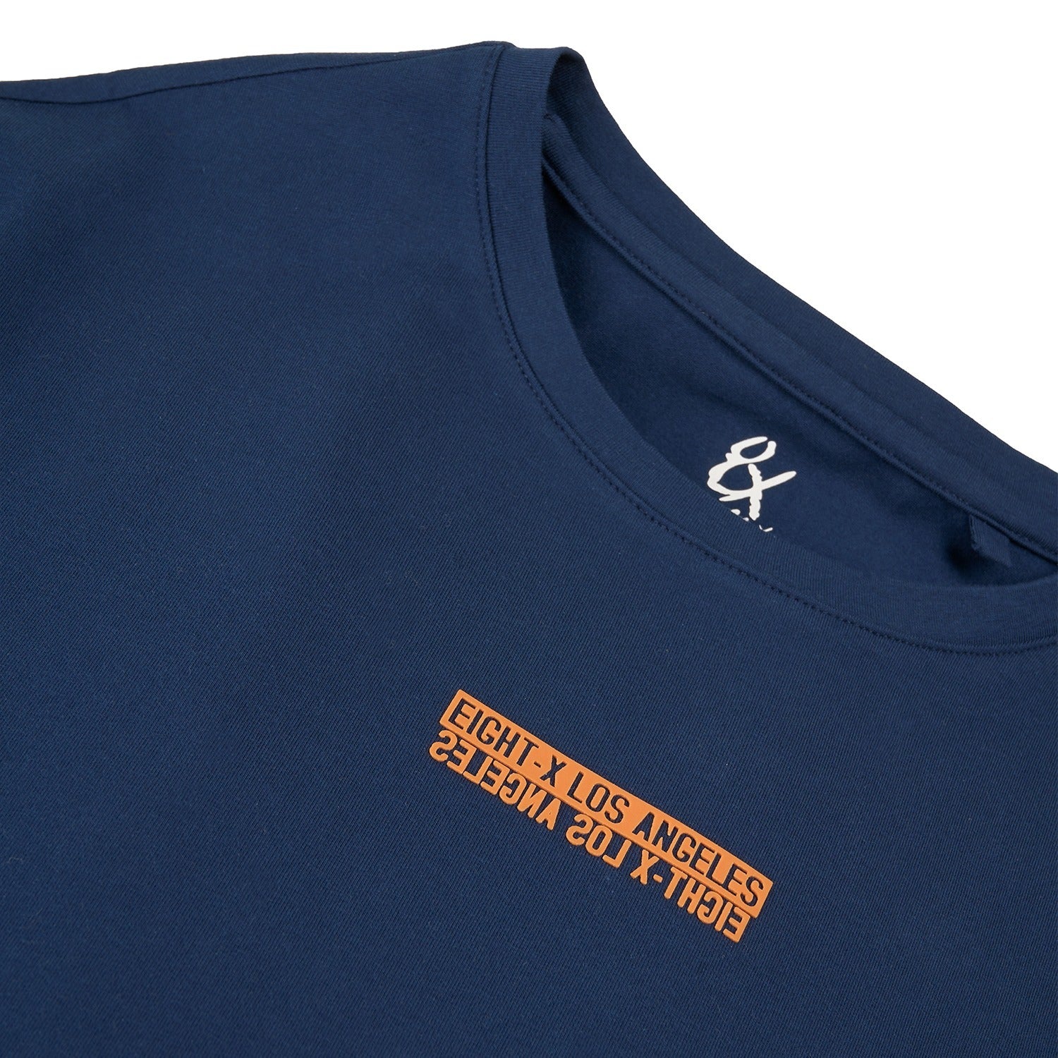 A men's graphic t-shirt featuring mirrored Eight X Los Angeles branding in silicone for a sleek, raised finish. Designed in Los Angeles, this tee also includes a vertical stripe from the neckline down the back, reading Los Angeles, for a clean, graphic-forward look.