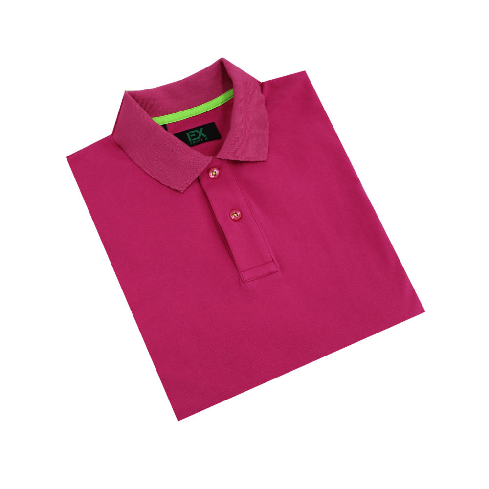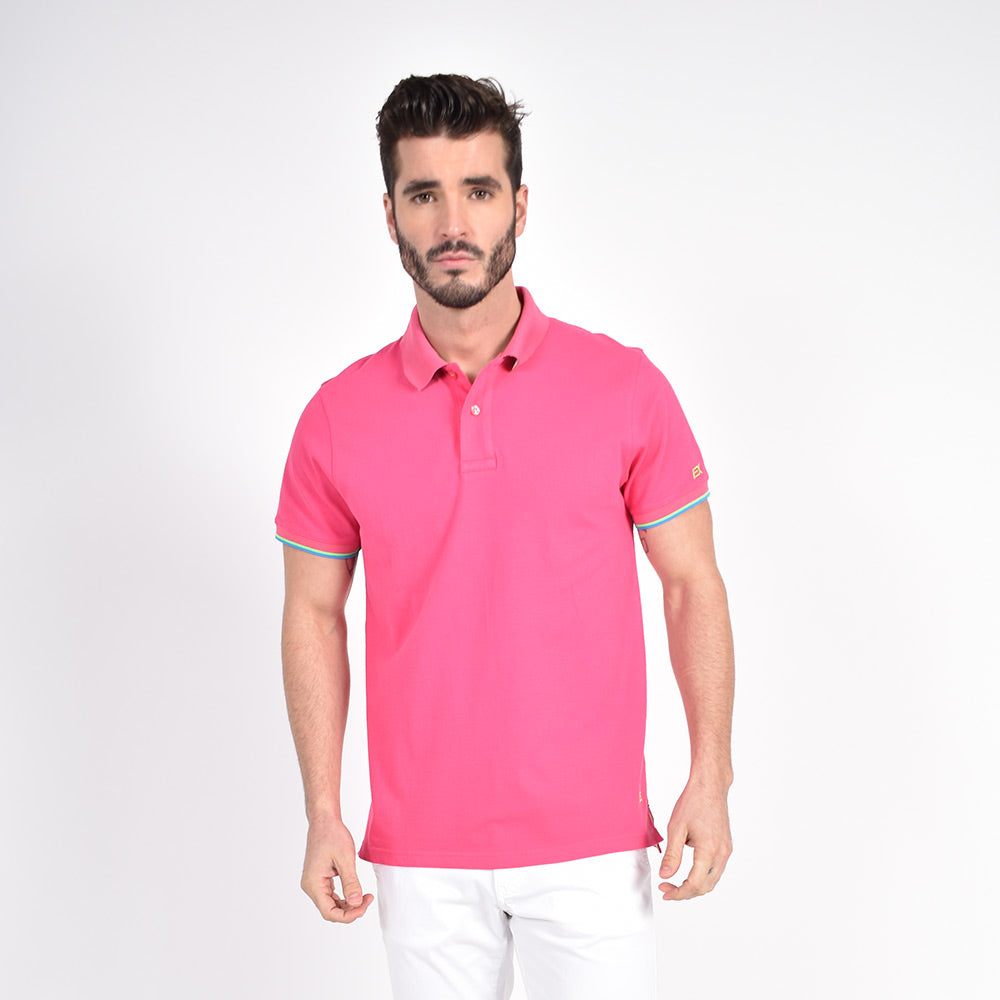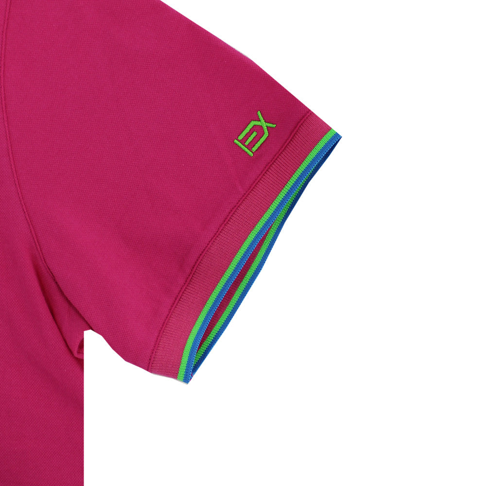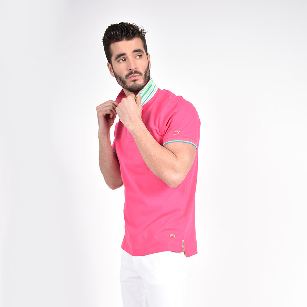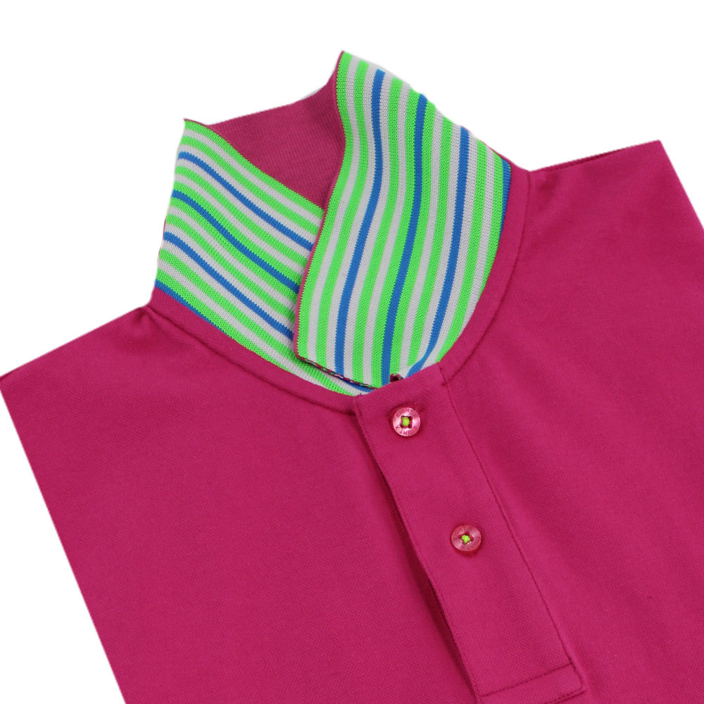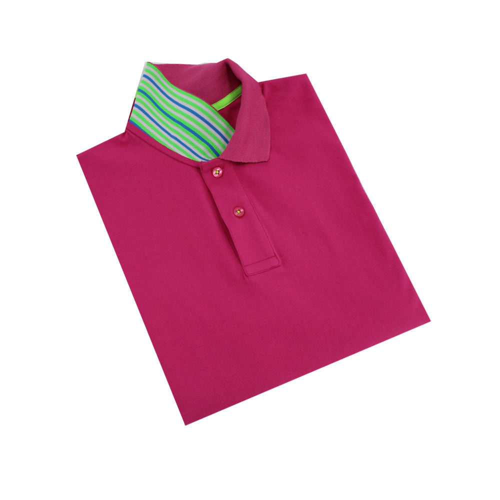 Fuchsia Polo with Double Sided Multi colored Striped Collar