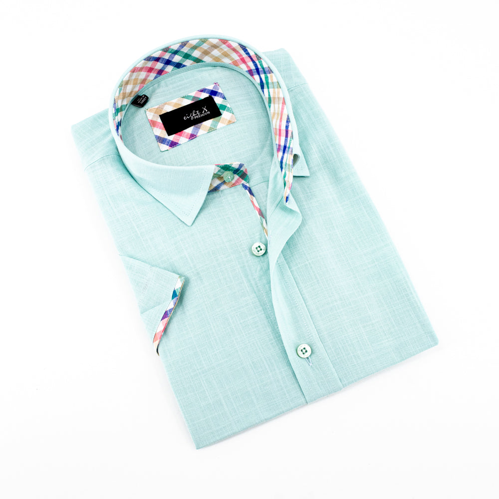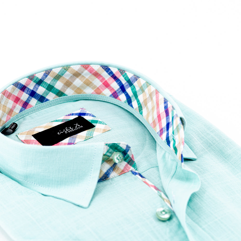 A bright rainbow gingham trim adds a playful touch to our signature button-up. Handcrafted from select Italian cotton, this warm-weather essential is naturally durable, lightweight, and always polished. For the ultimate summer casual look, pair with our 100% linen shorts.