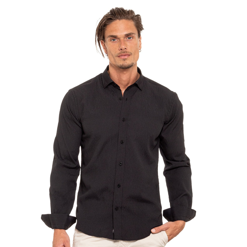 Seersucker Button Down Shirt - Black